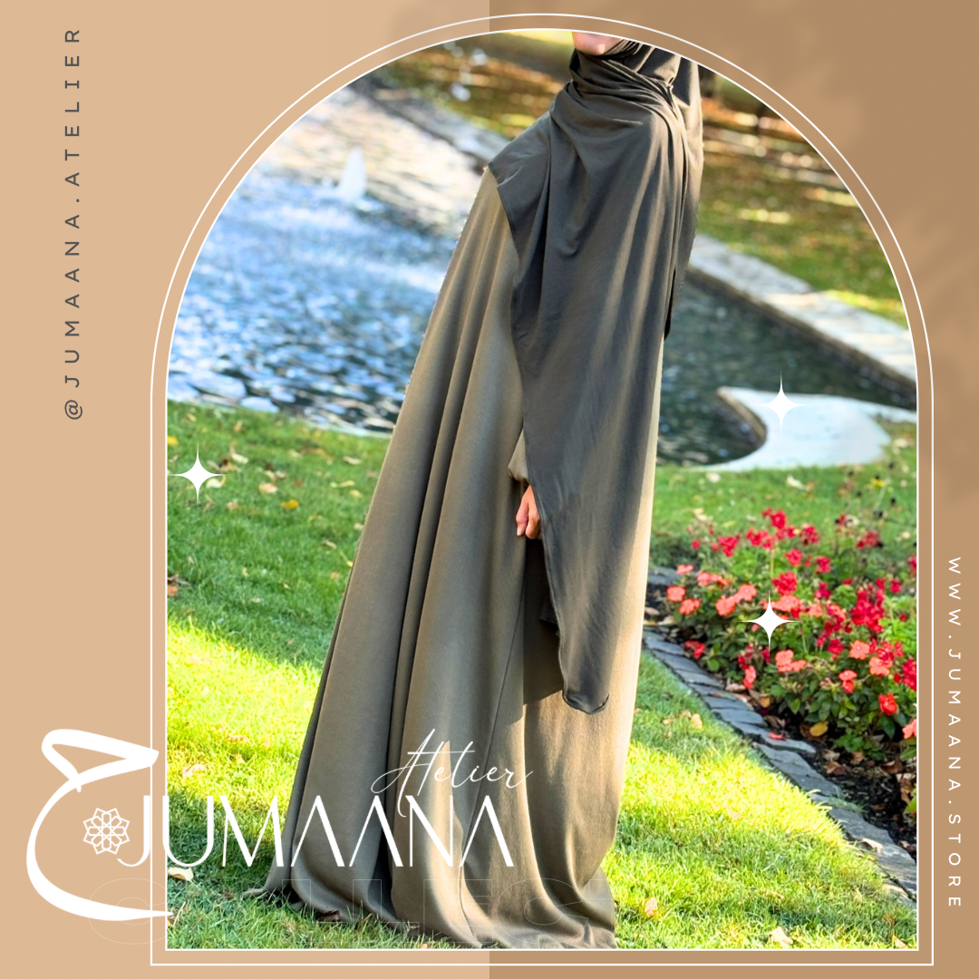 Unsere Instantjihabat werden aus hochwertigem Stoff und von Hand in unserem Atelier hier in Deutschland genäht. Wir bieten den Hijab in verschiedenen Größen an.