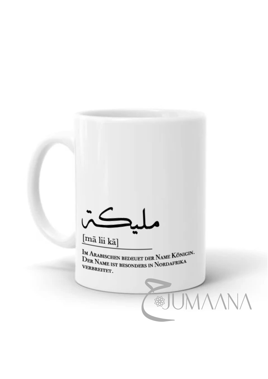 Diese besondere Tasse trifft jeden Geschmack. Keramikbecher mit stylischem Aufdruck im Wörterbuchstile. Alternativ kann man beim Namen wählen zwischen arabischer und lateinischer Schreibweise. Darunter wird der Name in Umlautschrift angegeben, gefolgt von einer kurzen Beschreibung.